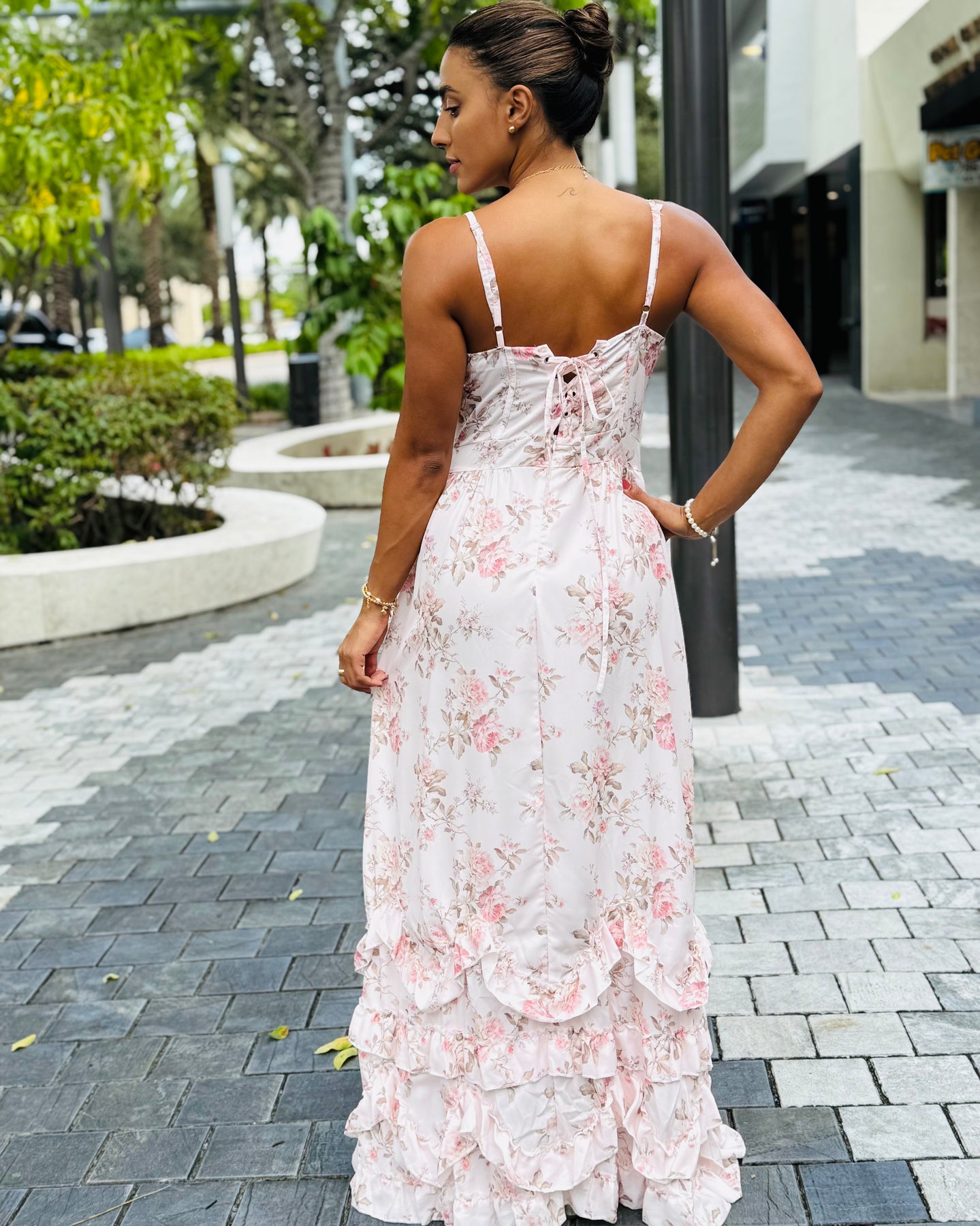 The Hailey Maxidress features a beautiful floral pattern, along with high side front slits and ruffles for added detail. This maxi dress is perfect for any occasion, providing both style and comfort. With its elegant design and flattering fit, the Hailey Maxidress is a must-have addition to any wardrobe.