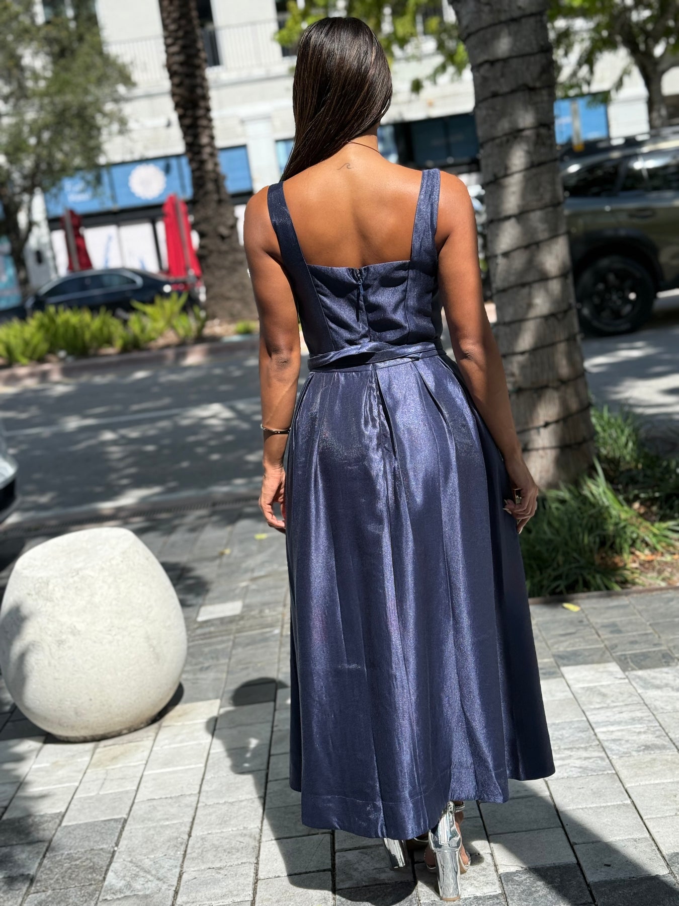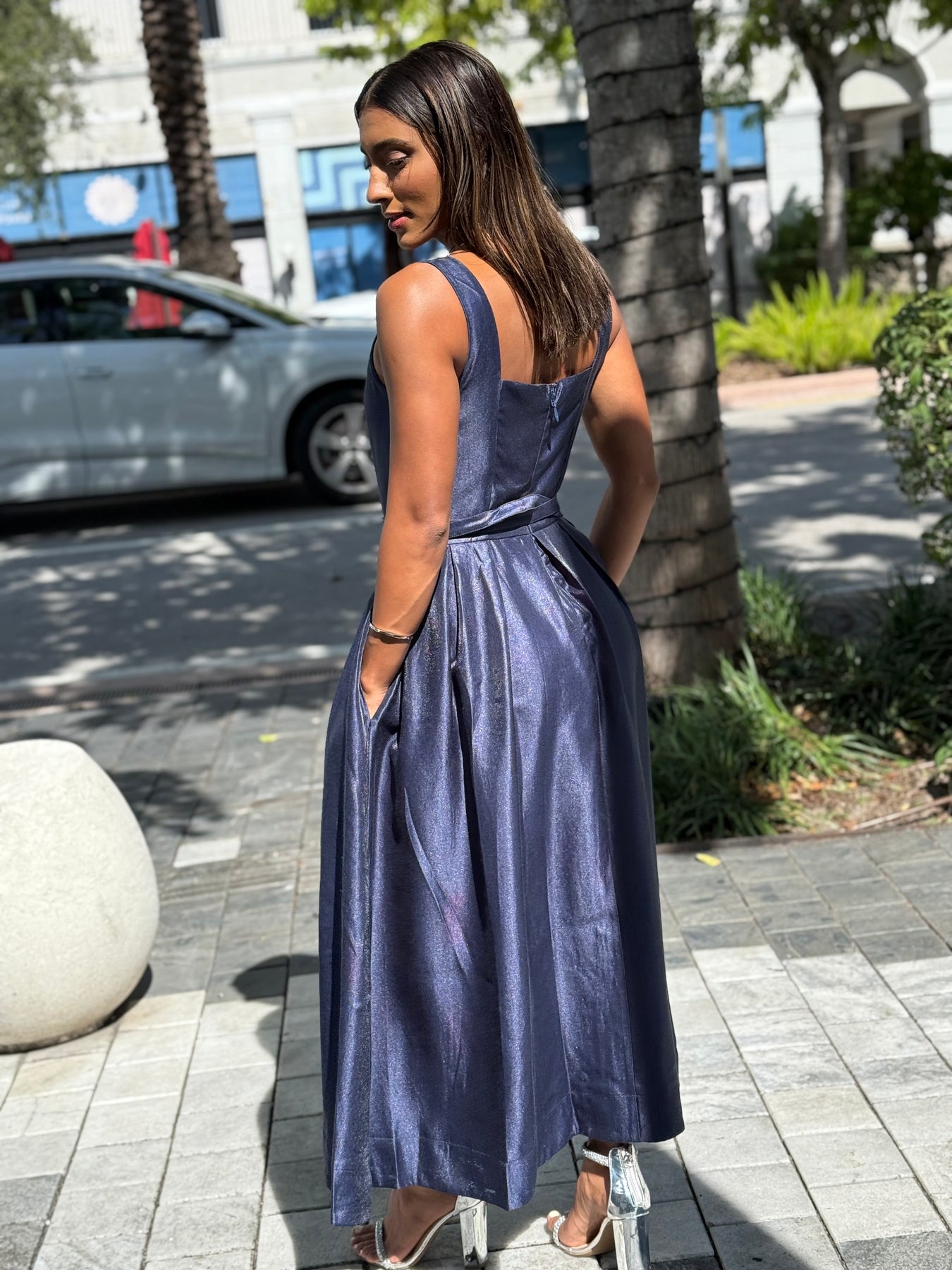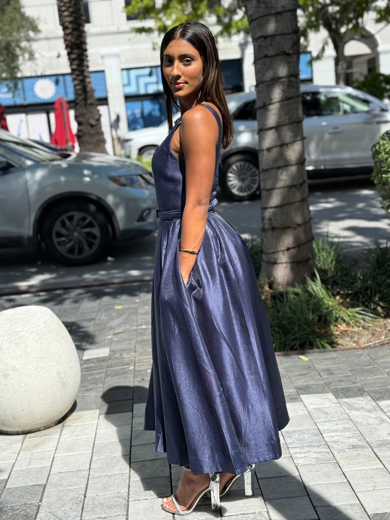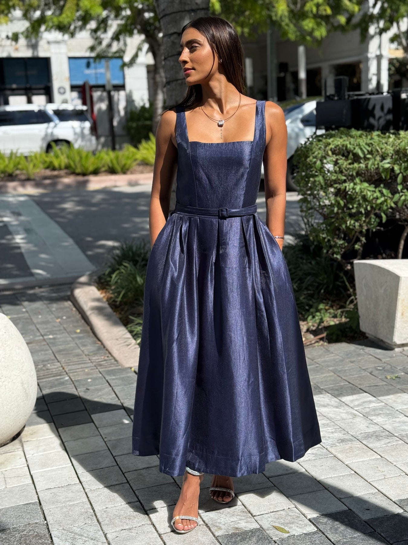 The Hunter Midi Dress is a stylish and functional addition to any wardrobe. The Navy A line design is both flattering and comfortable, while the added pockets provide convenient storage. Perfect for any occasion, this dress is a must-have for those seeking both fashion and practicality.