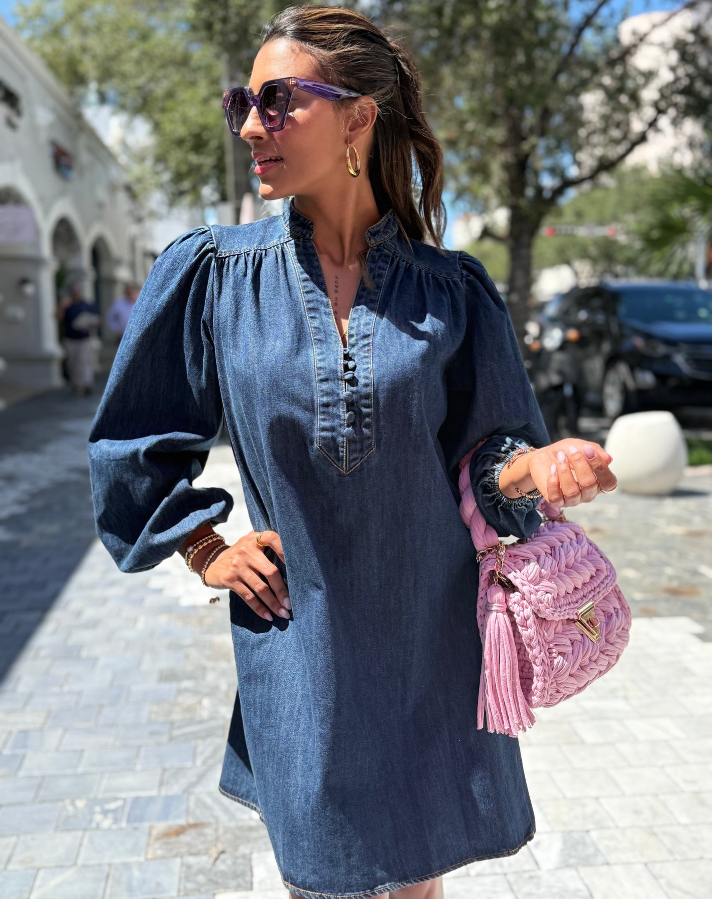 Dark indigo dress , neck with buttons Upgrade your wardrobe with our Jenny Dark indigo Dress. Made with high-quality fabric, this dress features a front v-neckline with buttons and long sleeves. Its dark indigo hue complements any skin tone.