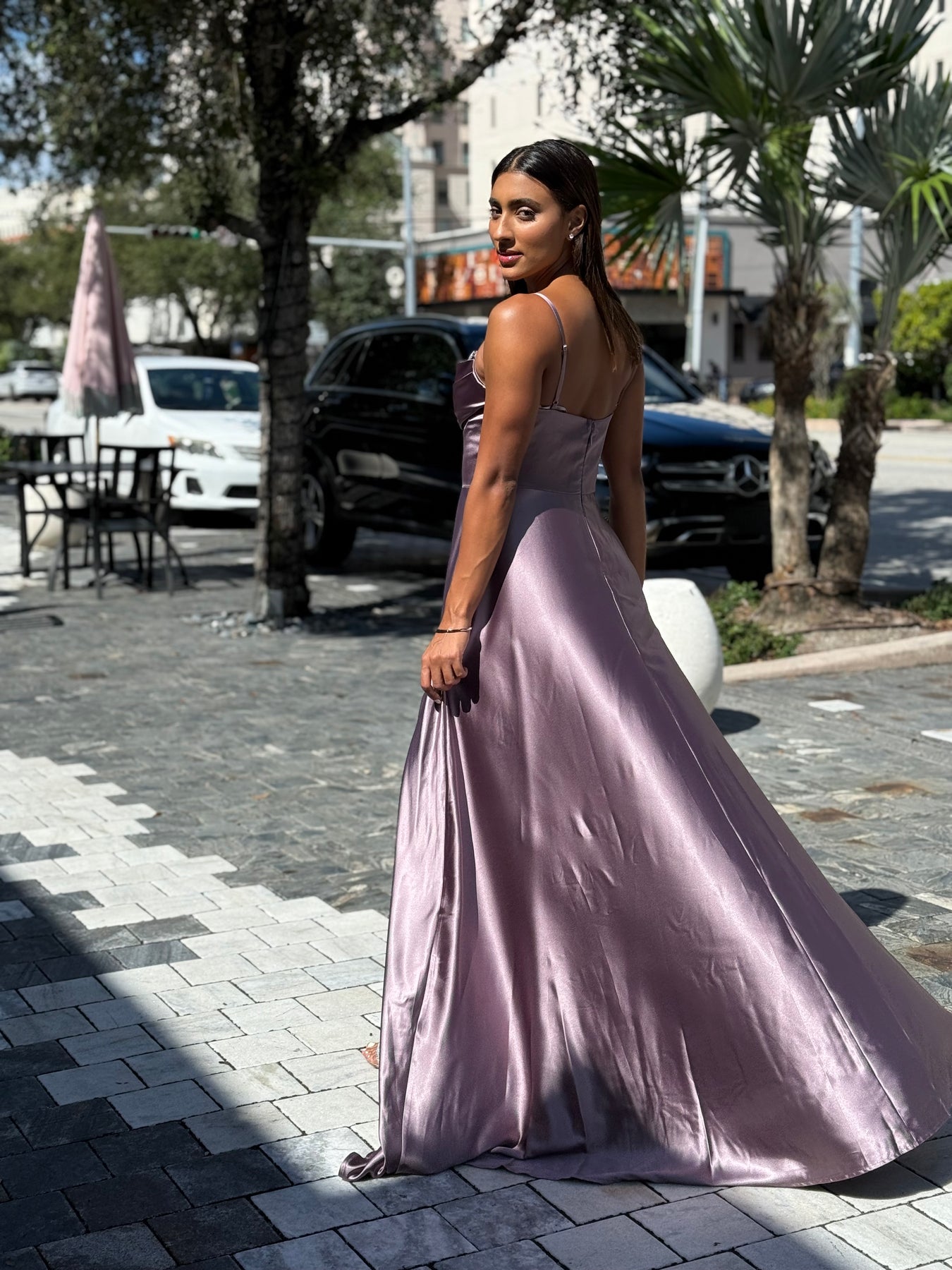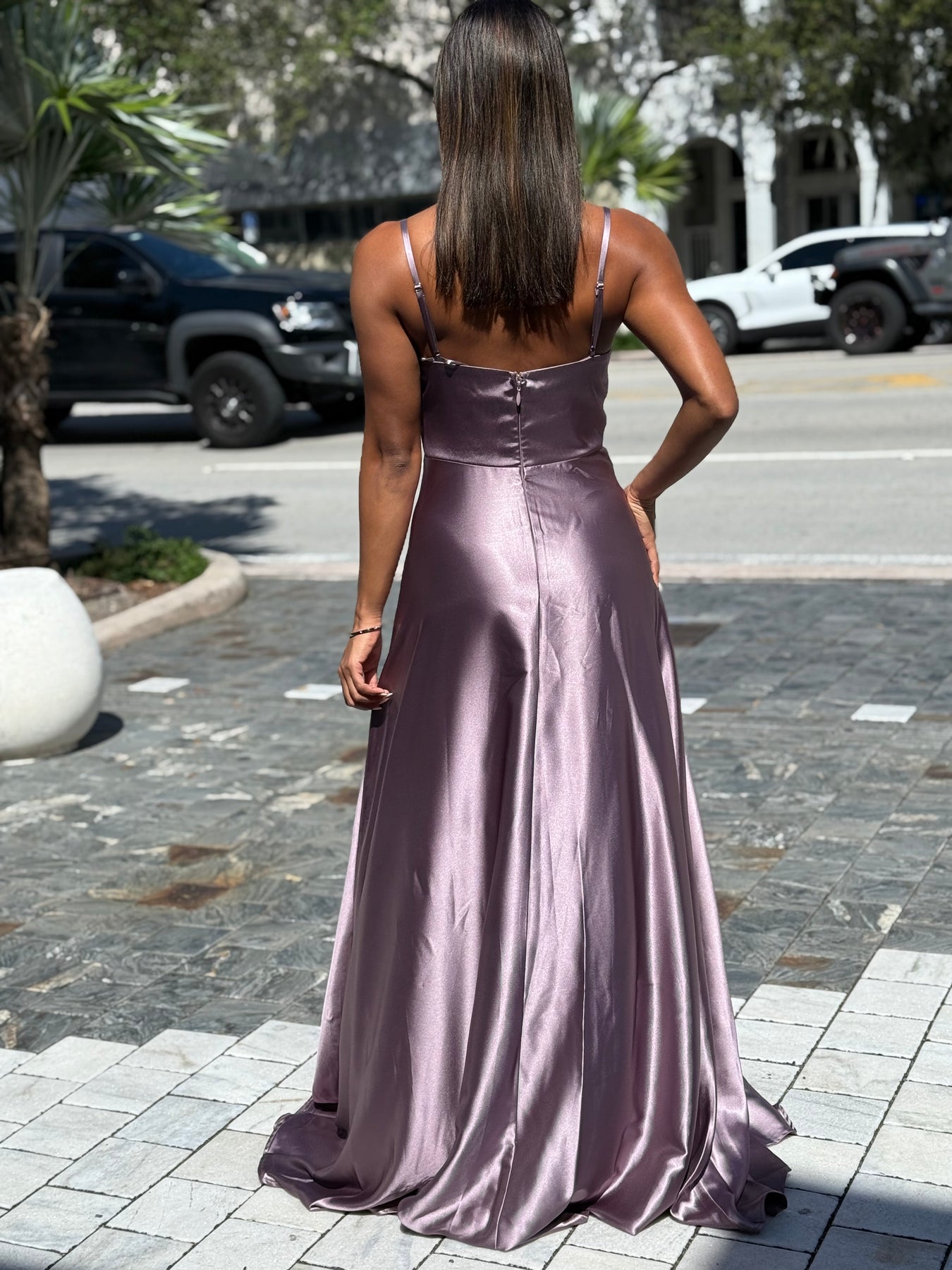 Expertly crafted, the Liana Gown Dress features delicate spaghetti straps and a high leg slit for a subtly sexy look. The A line cut is flattering for all body types, while the rose mauve color and appliqué details add a touch of elegance. You'll feel confident and beautiful in this stunning dress.