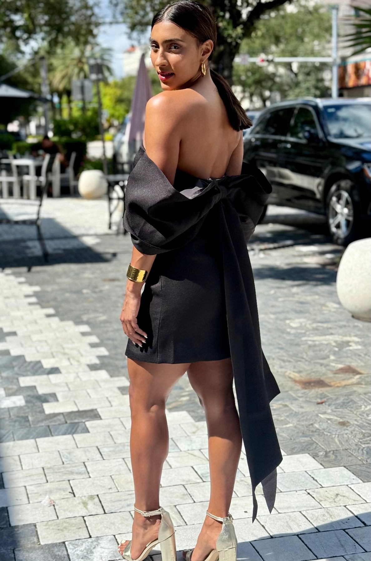 Expertly crafted with a timeless of the shoulder design, the Modena Mini Dress in classic black is a versatile addition to any wardrobe. Made from lightweight yet durable fabric, it offers all-day comfort while adding a touch of elegance to your look. The sophisticated cut and figure-flattering fit will accentuate your curves, making for a confident and chic ensemble.
