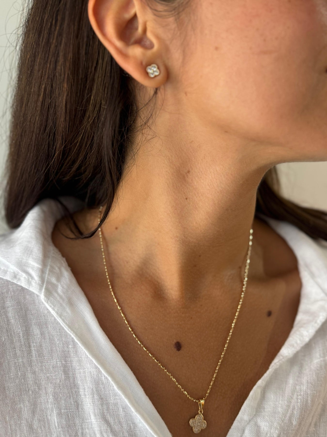 Upgrade your jewelry collection with the beautiful Ariana Earrings. Made with 18k gold layer, these small sized earrings exude elegance and luxury. Elevate any outfit and shine bright with these statement pieces.
