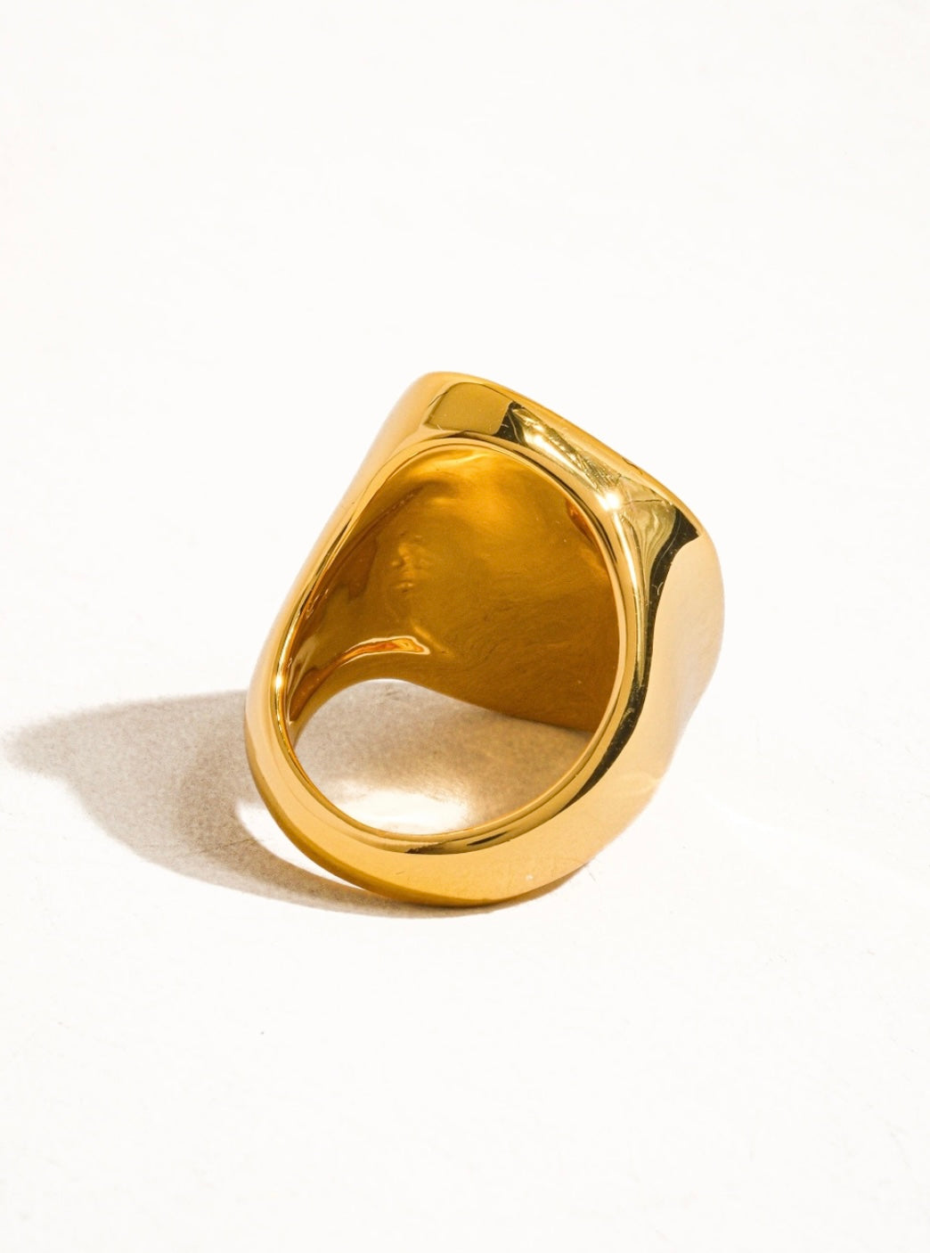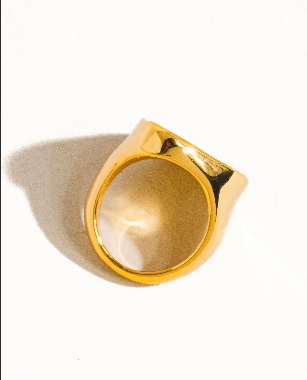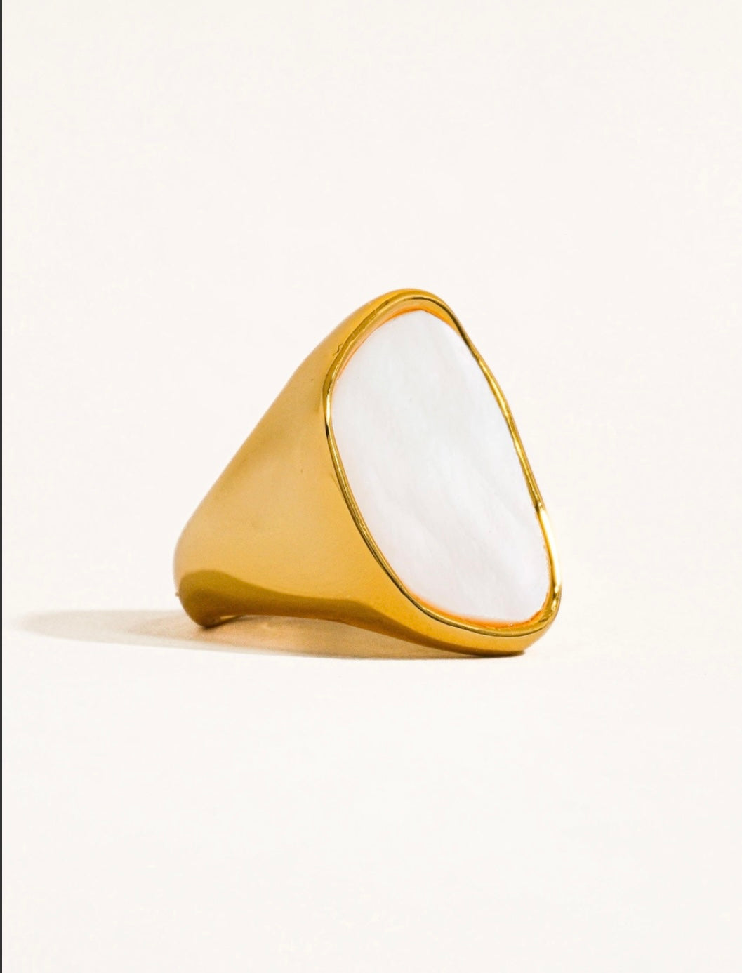 Elevate your style with the Athenas Statement Ring, this ring boasts a natural shell design that is both non-tarnish and eye-catching. Add a touch of elegance and sophistication to any outfit with this statement piece.