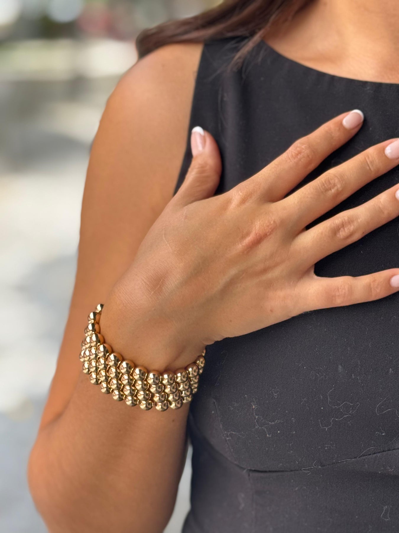 Experience elegance and luxury with our Cari Bracelet. Skillfully crafted with 18k gold layers, this bracelet will add a touch of glamour to any outfit. Elevate your style and make a statement with this stunning piece.