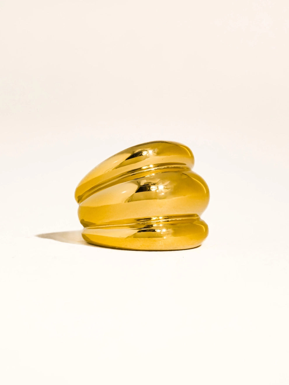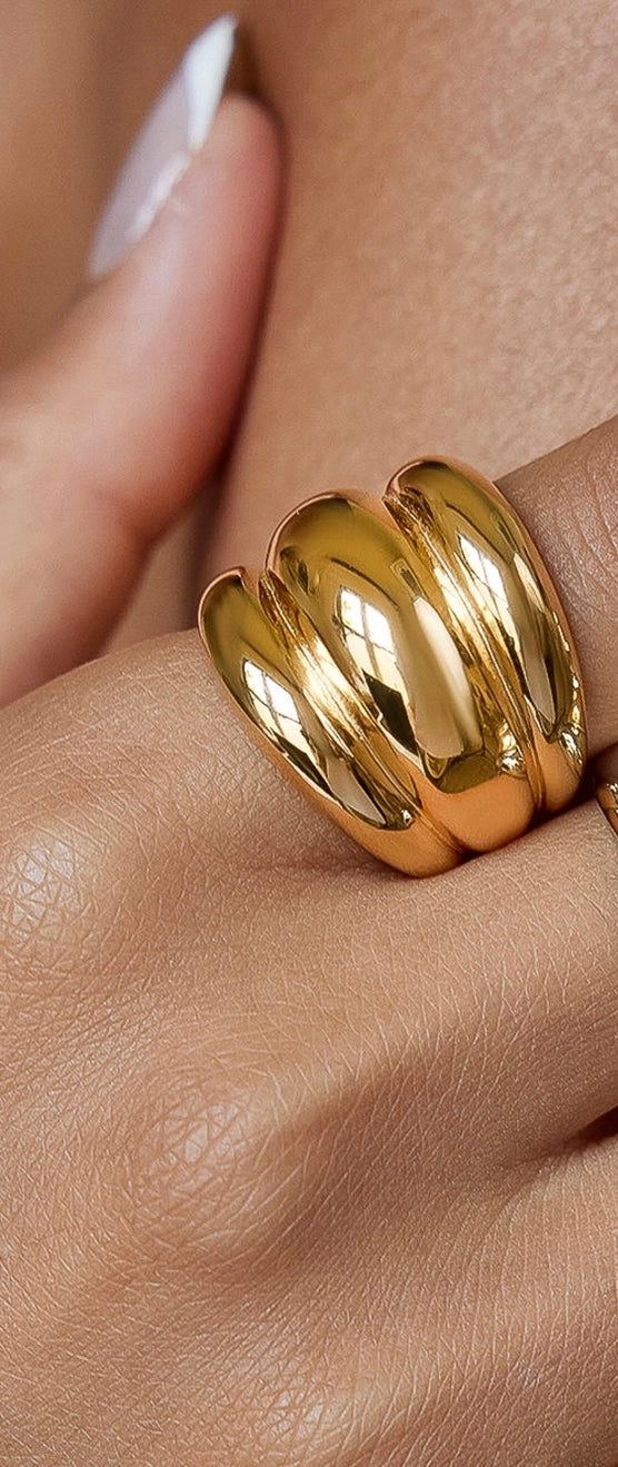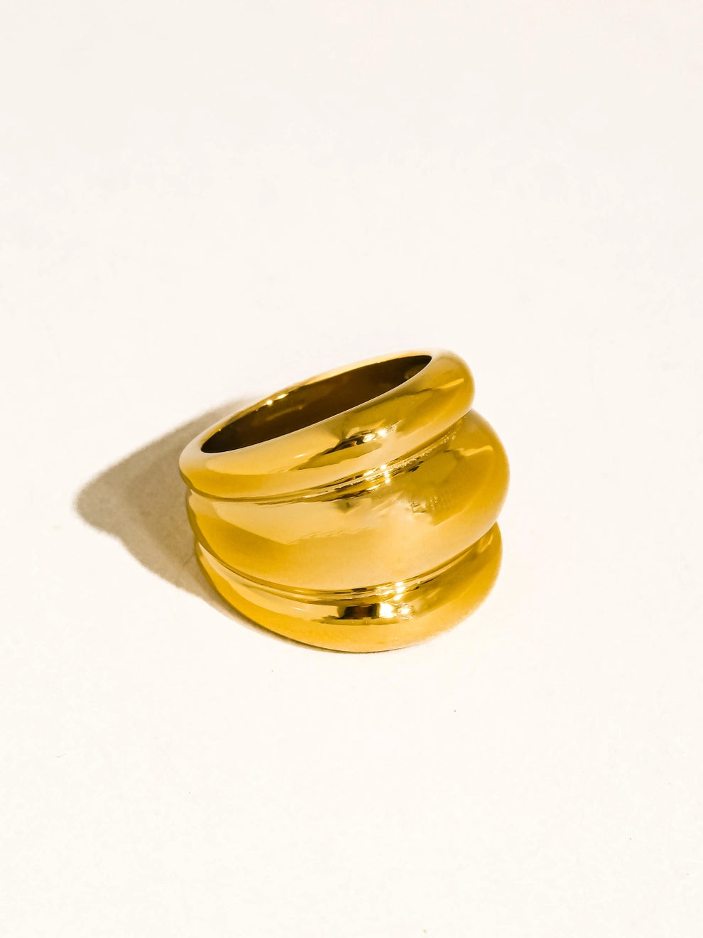 Crafted for durability and shine, the Daelen statement ring is a true standout piece. Its non-tarnish dome design adds texture and dimension, making it the perfect statement ring for any occasion. Dress up or down for a chic and versatile look.