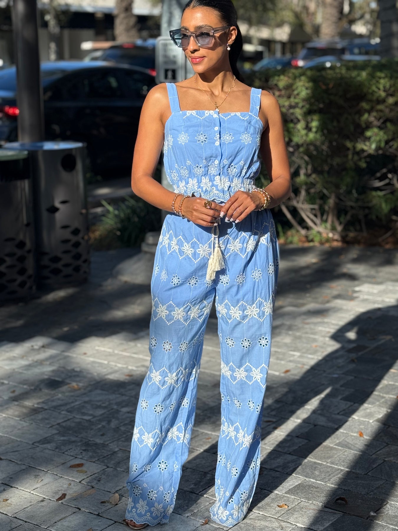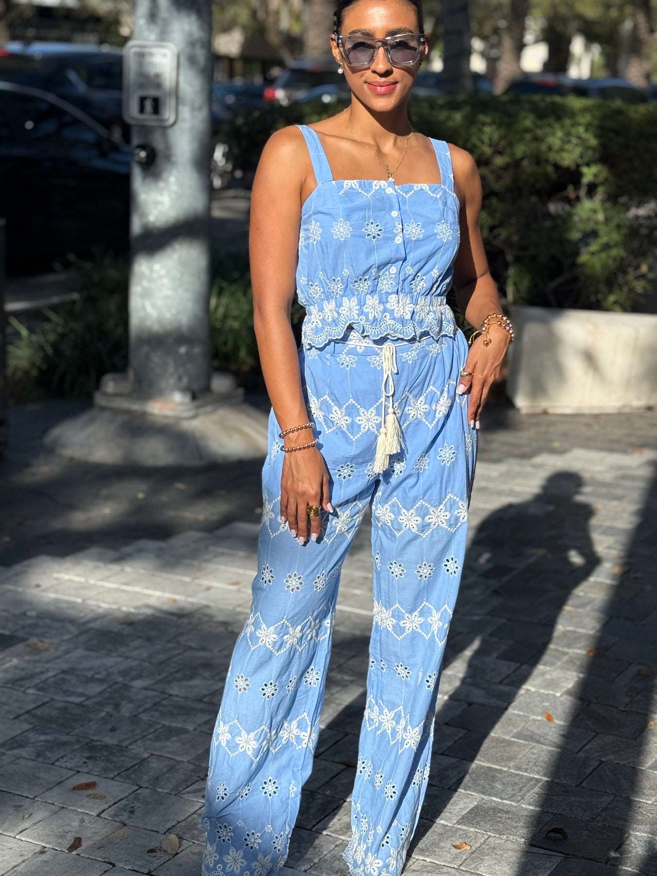Elevate your everyday style with the Claudia Set. This perfectly coordinated ensemble features a cropped camisole with smocked elastic detailing and a straight neckline, paired with matching pants for a polished, put-together look.