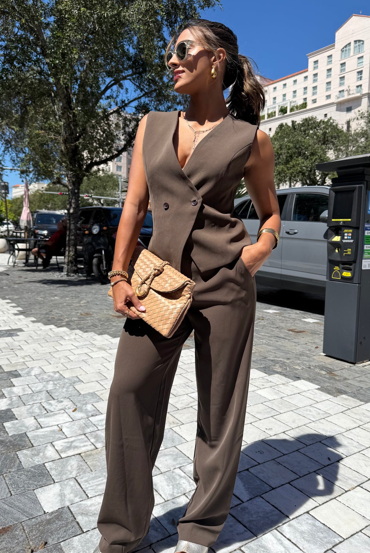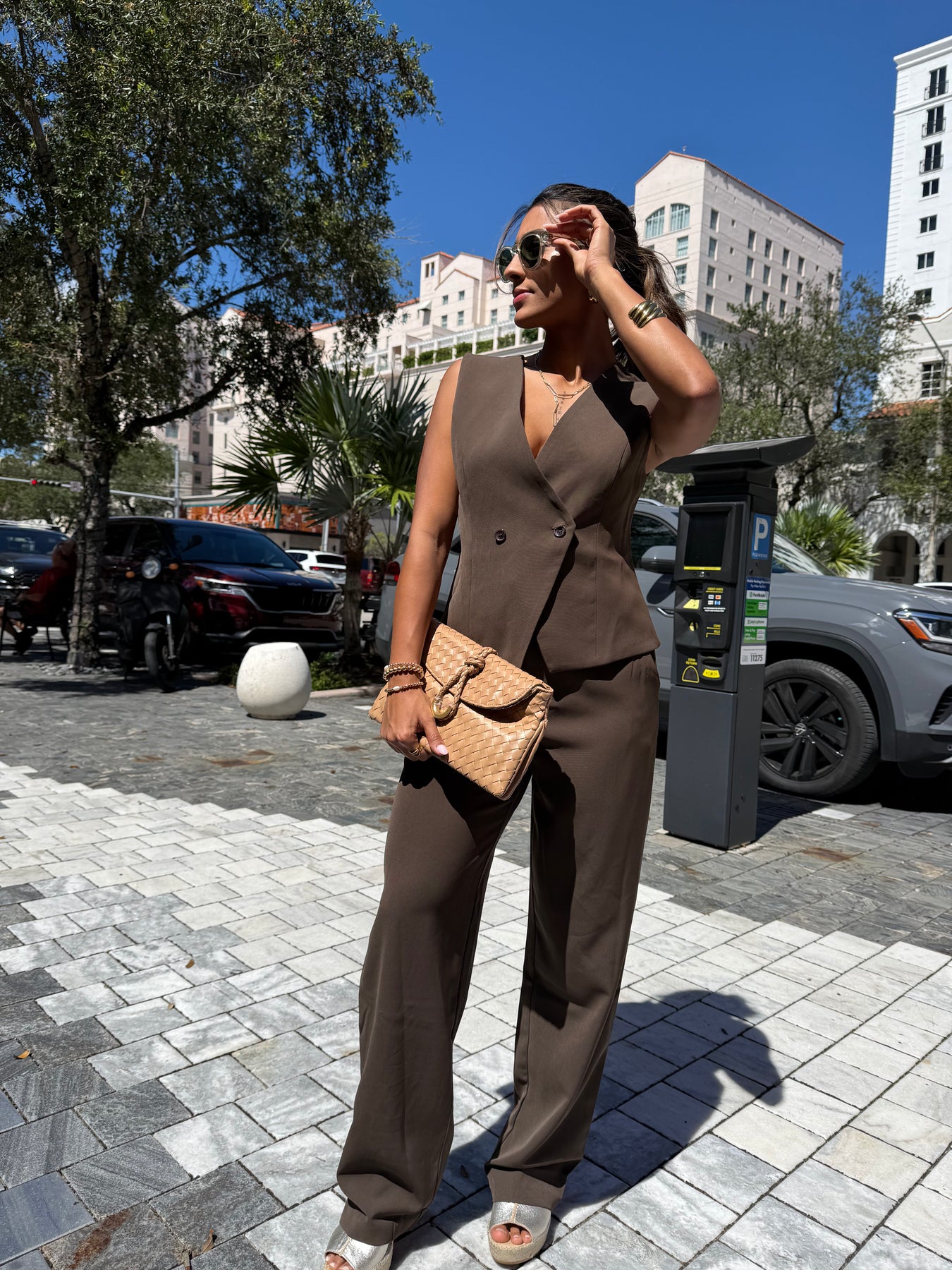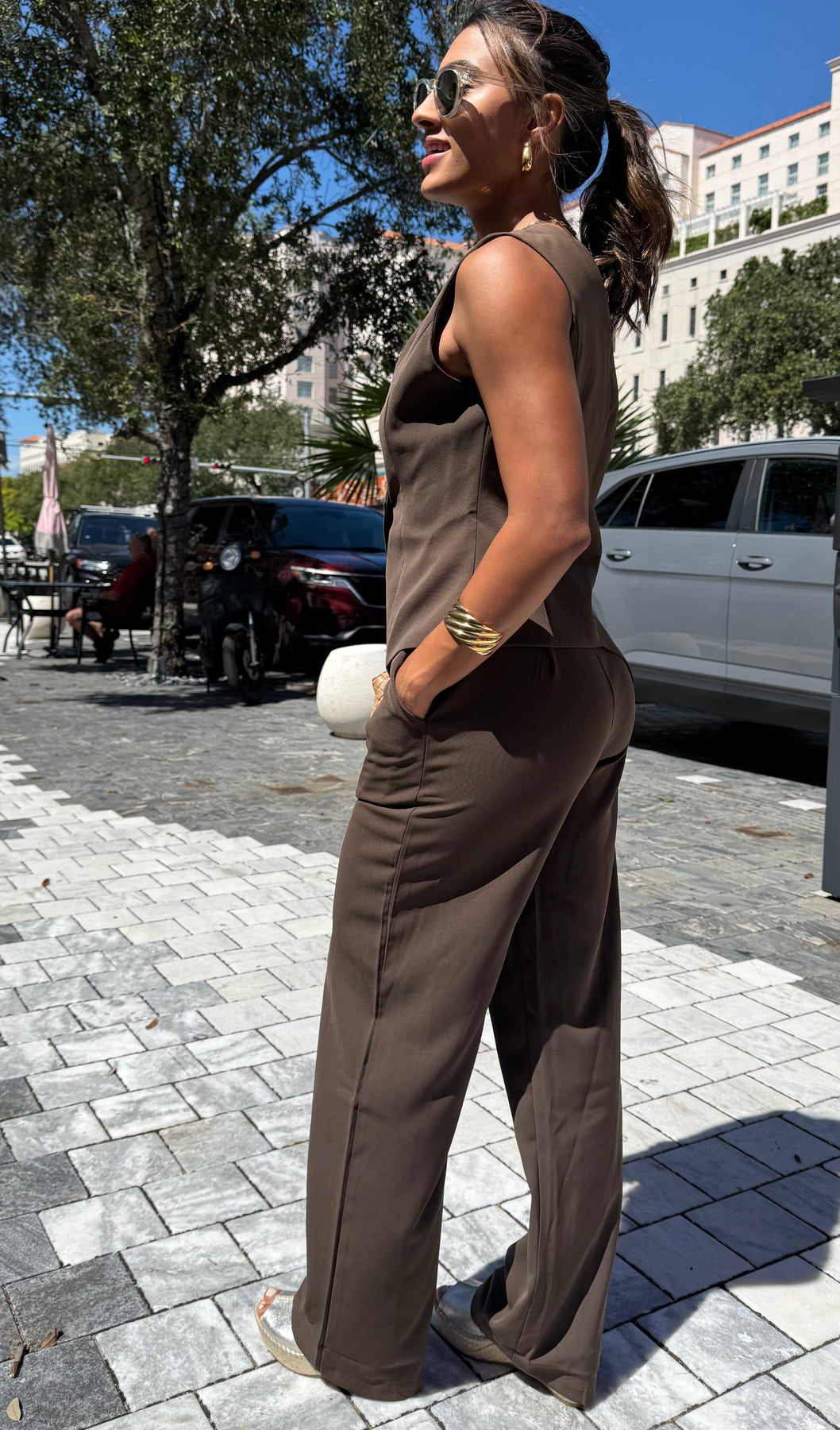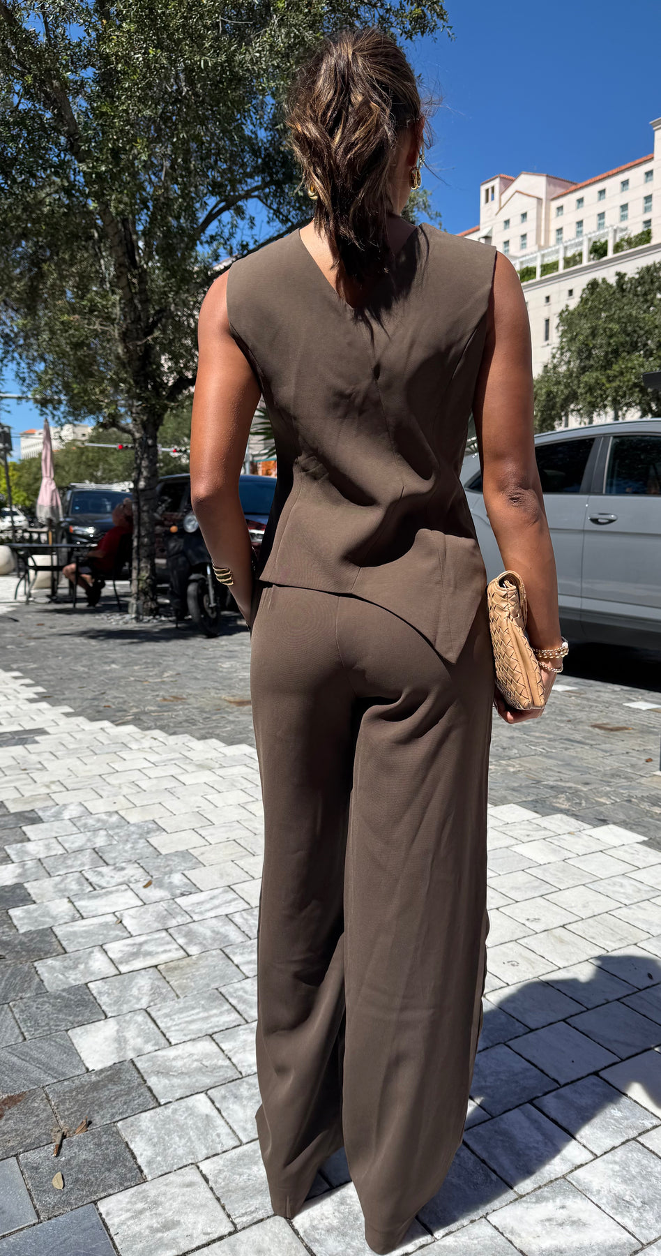 The Francis Set features a set of long pants with convenient pockets and an asymmetrical sleeveless vest. Perfect for maximizing comfort and mobility